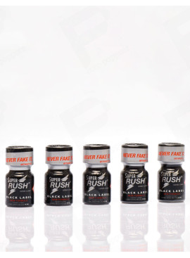 Super Rush Black Label 10ml x5. Confezione di 5 bottiglie Super Rush Black Label 10 ml. Prodotto dal mitico marchio Rush. Risparmia denaro scegliendo di acquistare questo poppers in una confezione di 5 bottiglie! Ogni bottiglia contiene 10 ml di questo liquido extra strong. Disponibile in un piccolo formato, 5 bottiglie non sono troppe. Questo poppere nasconde davvero le sue intenzioni, estremamente potente, soddisfa i desideri più esigenti. Porterà un rush esplosivo fin dalle prime inalazioni, così come effetti deliranti sui tuoi sensi. Aspettati a decollare. Formulato con nitrito di amile, questo non è un poppers per i principianti, ma è dedicato agli utenti esperti della bottiglia di vetro. Il poppers Super Rush Black Label è disponibile nel nostro magazzino in confezione o al pezzo. Effetti intensi garantiti!